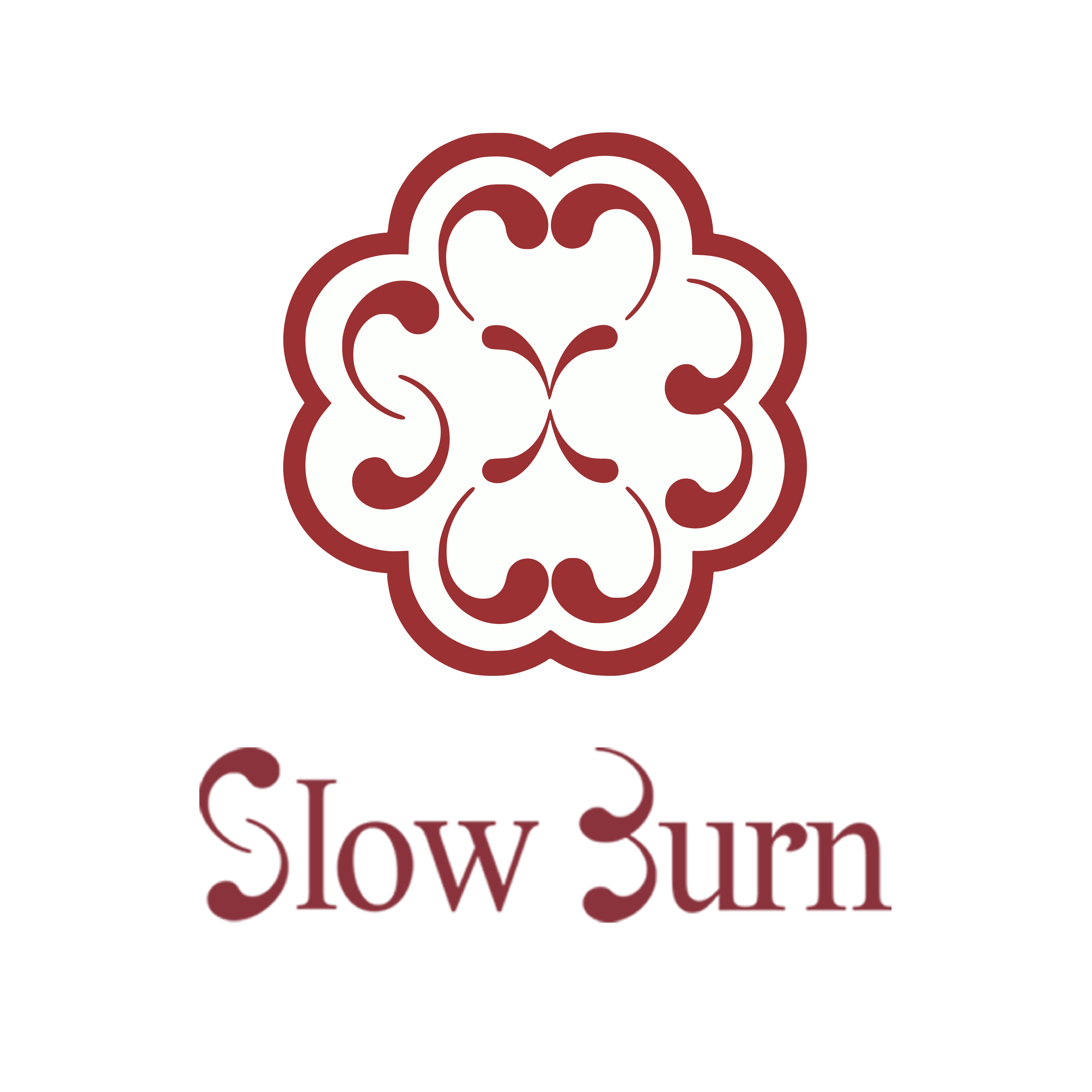 The logo is designed as a cohesive shape resembling a flower. Its details include an hourglass, the letters S and B, and a heart, all integrated to represent Slow Burn. The curves and lines create a sense of flow and connection, showing that every part of the design is intentional.